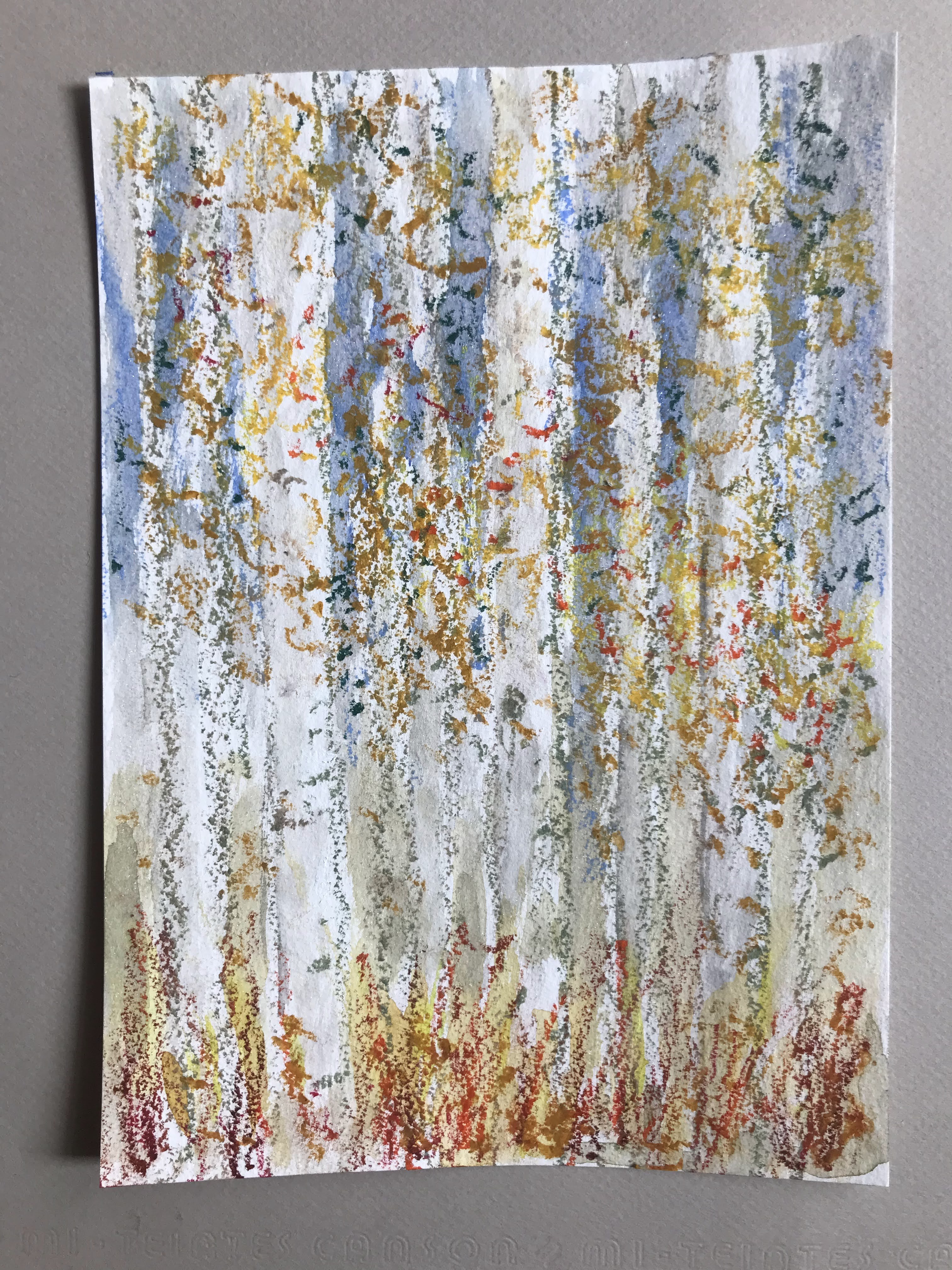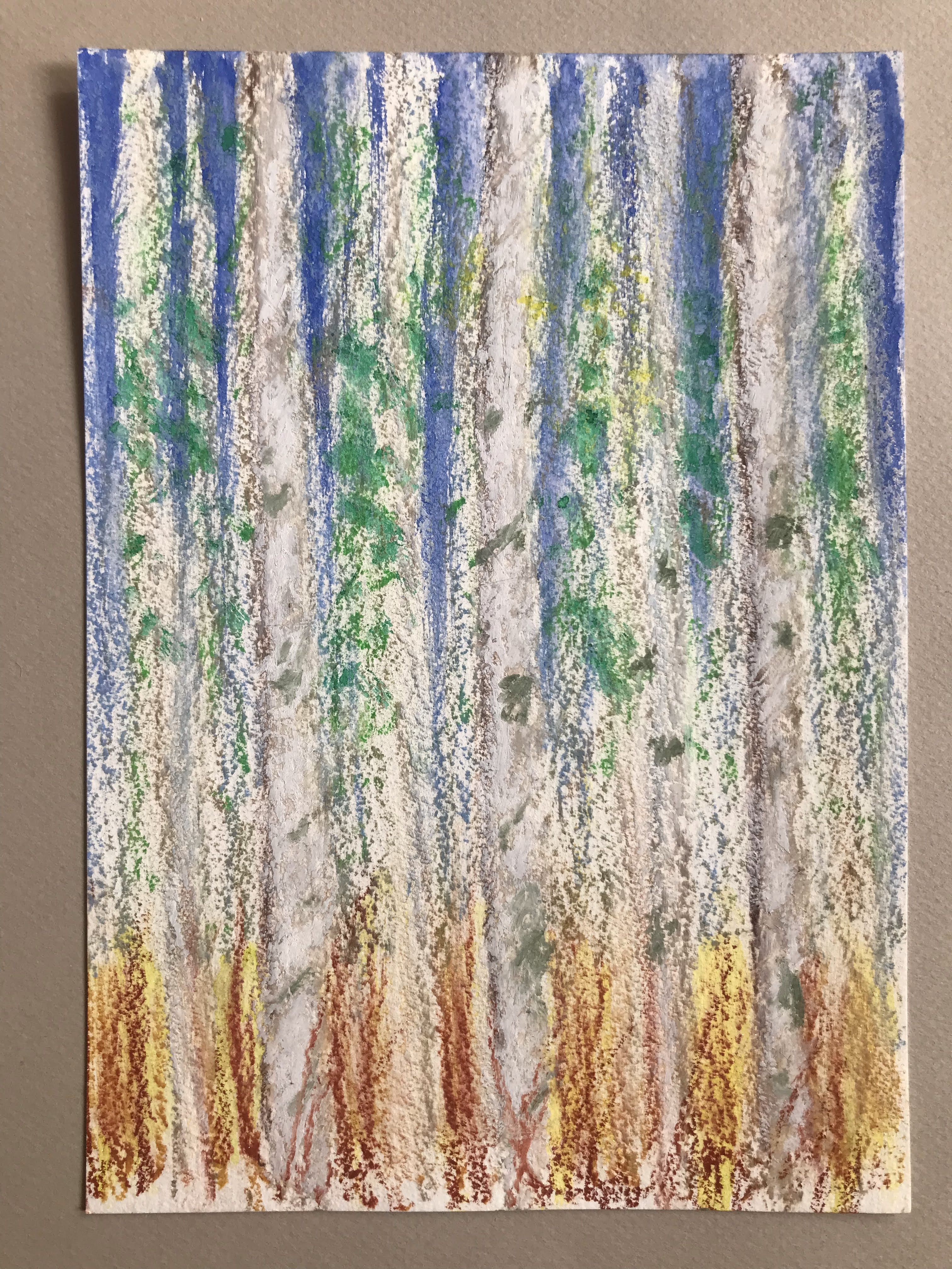 Four seasons – Birches – soft pastels by bernardoliver.art, 9-10 January 2025, 4 sketches in soft pastels on A4 Clairefontaine mix media paper in gris.